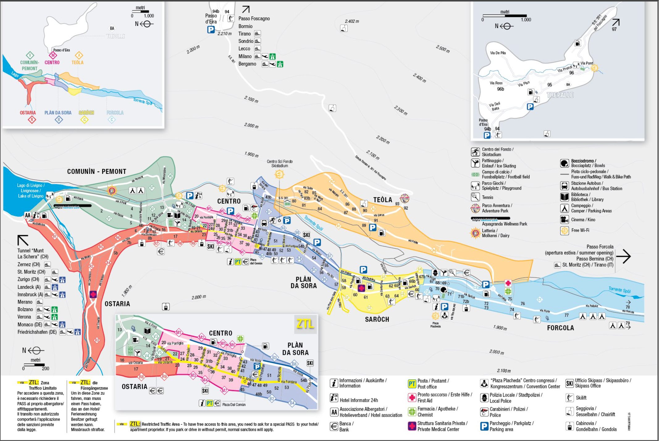 Per chi arriva in macchina dalle zone più periferiche di Livigno (Teola, San Rocco, Forcola, Pemont …), la skiarea è comunque servita da un ampio e gratuito parcheggio a 50 mt dalla partenza degli impianti, in prossimità della chiesa di Santa Maria.